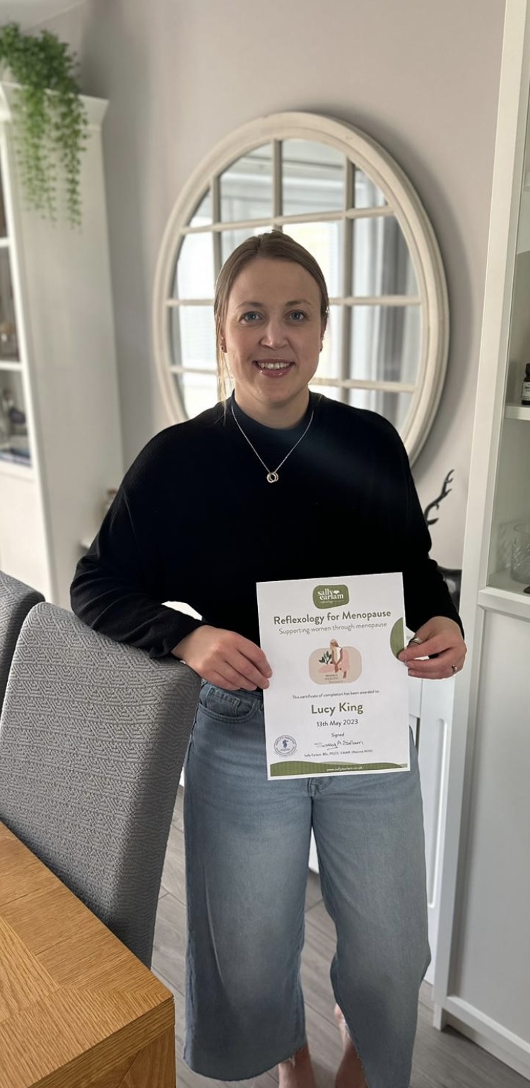 I have completed additional training with Sally Earlam, which enables me to offer clients a support package that uses specific reflexology techniques tailored to the individual woman's menopause symptoms and also incorporates a focus on 'The 5 Pillars for Healthy Menopause'.